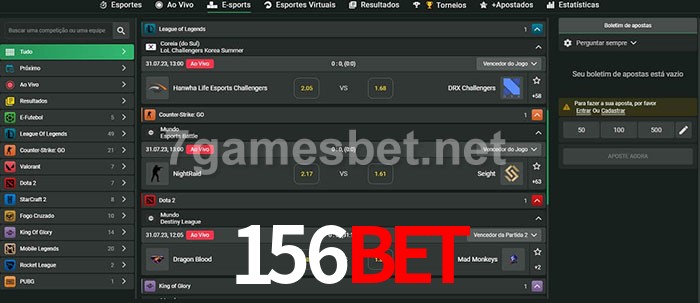 O 156bet oferece uma grande seleção de opções de apostas em e-sports com probabilidades competitivas